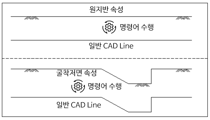 원지반선, 굴착저면, 지하수위, H-Pile 사장라인은 전개도에서 하나의 선만 존재할 수 있으며, 대칭할 경우 속성은 복사되지 않고 CAD 객체만 대칭으로 복사됩니다.