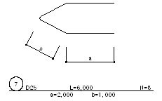 6철근은 D-Wall 설계에서 전단철근 제원 및 간격에 의해서 철근이 배치됩니다. a는 D-Wall두께 (피복두께 *2) + 50 mm(고정), b는 200 mm로 고정되어 있습니다.변수 산정 공식 / 값 비고 a D-Wall 두께 - (피복두께 * 2) + 50mm 고정 b 200 mm 고정