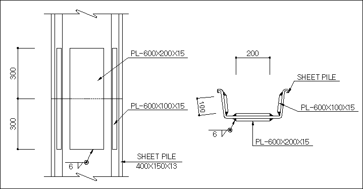 사이즈 관계없이 connection1_2-sheetpile.dwg 상세도를 제공