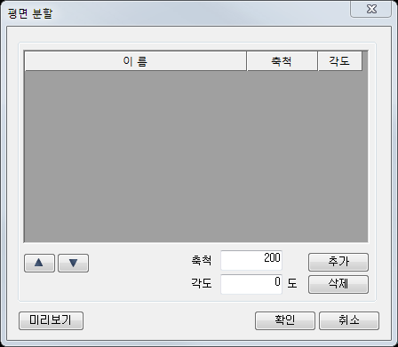 5) 분할 영역을 잘못 추가된 경우는 해당 분할 영역 순서에 위치하고 삭제 버튼을 이용하여 삭제 가능합니다.