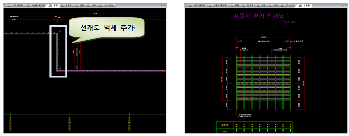 평면에서 작업된 흙막이벽체를 투영해서 전개도로 출력시 투영된 전개도 부분을 별도의 전개도로 추가하여 성과물로 생성시키는 기능입니다.