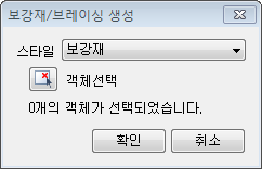 - 주3) 보강재/브레이싱 생성 입력창에 있는 스타일은 스타일 Tree에 등록된 보강재/브레이싱 스타일만 리스트로 보여줍니다.