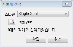평면, 전개도, 단면 View상에 사용자가 선(선 또는 폴리선)을 작도한 후 지보재 스타일과 객체를 선택하고 확인 버튼을 클릭하면 지보재가 생성됩니다.