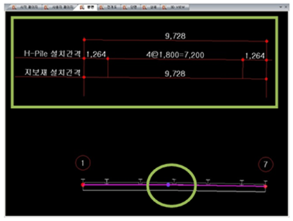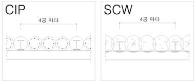 C.I.P/S.C.W 측면말뚝 간격으로 일반 측면말뚝 간격에 따라 배치 선택시 일반 측면말뚝 간격 값에 따라 배치됩니다.