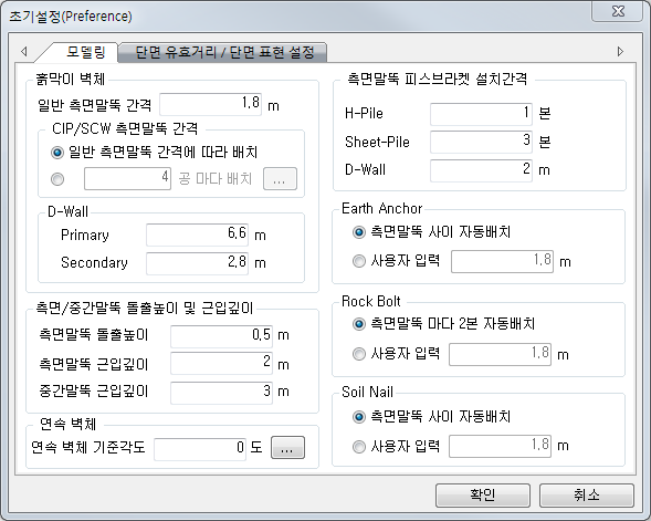 D-Wall의 Primary/Secondary 기본길이는 사용자가 작도 후 흙막이 벽체 생성시 적용되는 길이입니다.