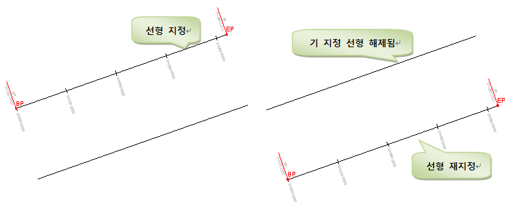 (3) "선형 적용"과 "선형 해제"를 이용하여 선택한 객체를 선형으로 지정하고 지정된 선형을 해제할 수 있습니다.