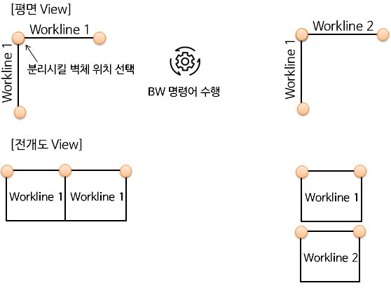 주1) 하나의 선 또는 폴리선으로 한면의 흙막이 벽체가 생성된 경우에는 Break Workline 기능이 수행되지 않습니다.