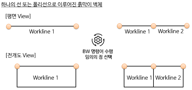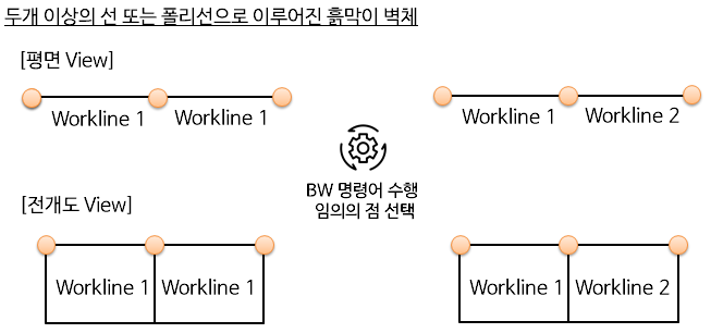 주2) 두 개 이상의 선 또는 폴리선으로 한면의 흙막이 벽체가 생성된 경우에는 Break Workline 기능이 수행됩니다.