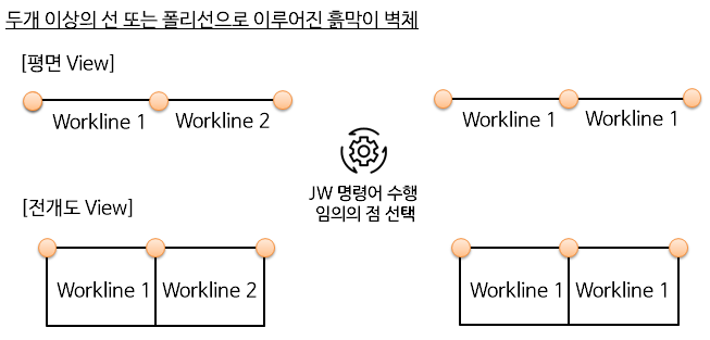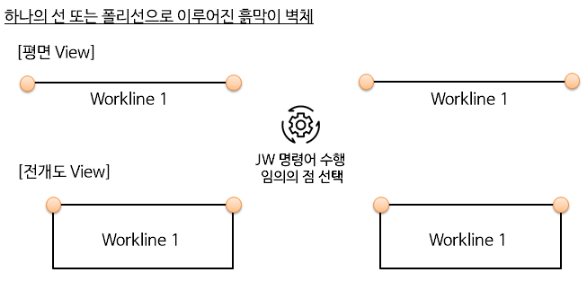 주2) 두 개 이상의 선 또는 폴리선으로 한면의 흙막이 벽체가 생성된 경우에는 Join Workline 기능이 수행됩니다.