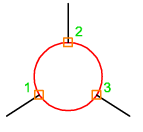 - 기본 방법은 중심과 반지름을 지정하는 것입니다. 그림에서와 같이 원을 그리는 세 가지 다른 방법이 있습니다.