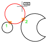 - 선택한 점에 가장 근접한 접점이 있는 지정된 반지름을 가진 원을 그립니다. 예를 들면 다음과 같습니다.