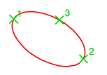 - 세 번째 점은 타원 중심과 두 번째 축의 끝점 간의 거리를 정의합니다.