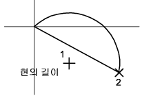 - 호의 다른 쪽 끝은 호 시작점에서 끝점까지의 현 길이를 지정함으로써 결정됩니다.