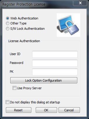 항목 설명 Web Authentication 온라인 제품 인증을 위해 Web Authentication을 체크합니다. License Authentication User ID