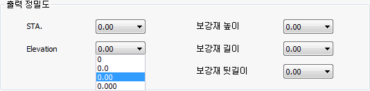 - 보강재 높이 계산 기준이 “측점 기준”인 경우에는 각 측점별 / 각 단별로 별도의 기준에 의해 계산한 보강재의 상대 높이 값을 도면에 출력합니다.