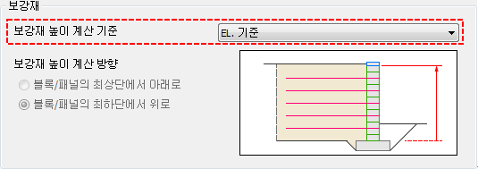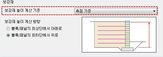 - 그리고 이때, 보강재 높이 계산 방향 옵션이 활성화 되고, 이 옵션에 따라 상대 높이 값의 기준이 달라집니다.