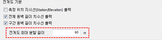 - 분할된 전개도의 길이가 사용자가 입력한 최대 분할길이 값과 같거나 작게 측점 단위로 전개도를 분할합니다.
