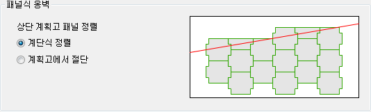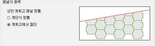 - 상단 계획고 라인이 경사진 경우 패널을 계단식으로 정렬할 지, 상단 계획고에 따라 절단할지 설정합니다.