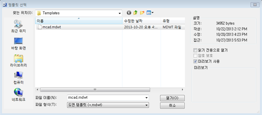 선택한 도면 템플릿에서 새 프로젝트를 시작합니다.