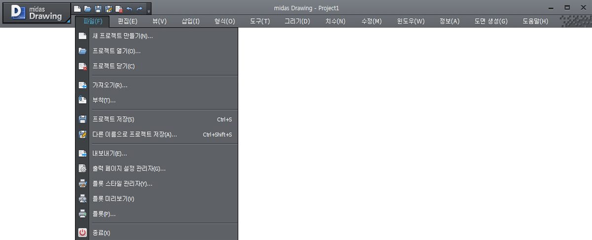 | 프로젝트 열기(O) | 기존 도면 파일을 엽니다. |