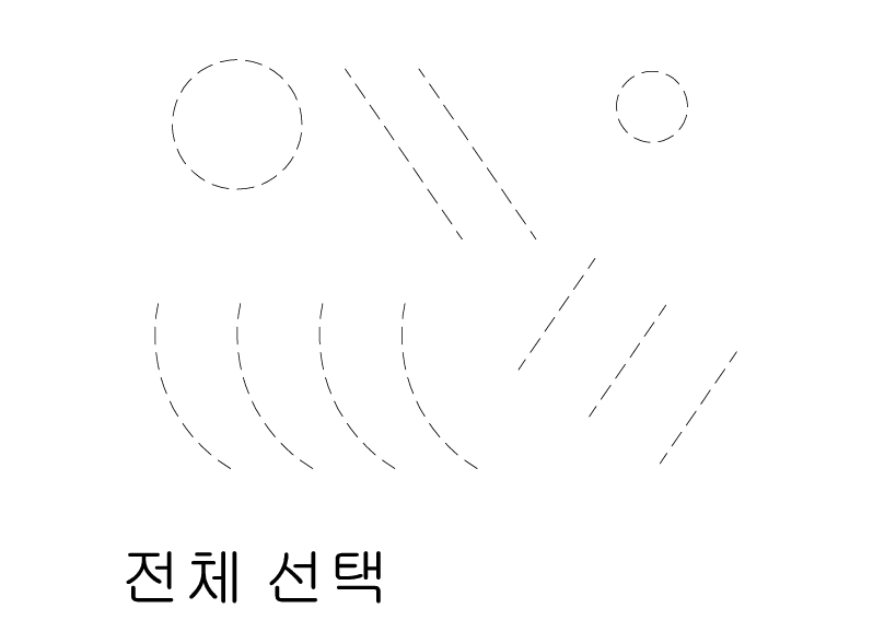 - 동결된 도면층이나 잠긴 도면층의 객체를 제외하고 모형 공간 또는 현재 배치에 있는 모든 객체를 선택합니다.