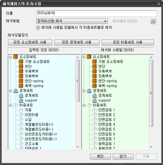 - 해석에서 사용할 모델에서 각 하중세트별로 해석