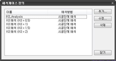 - 해석케이스 대화상자의 추가 버튼을 클릭하거나 생성된 해석케이스를 선택하고 수정 버튼을 클릭해 호출합니다.