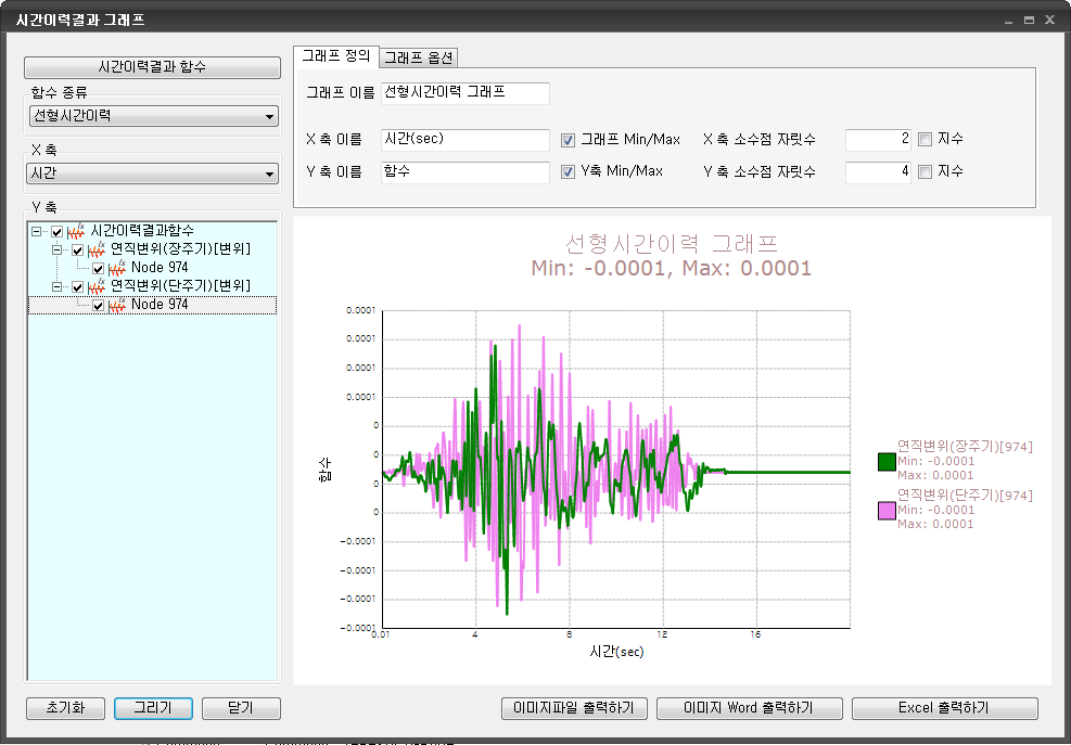 결과그래프 Home > SoilWorks > 동해석(Dynamic) > 결과 > 시간이력결과 > 결과그래프