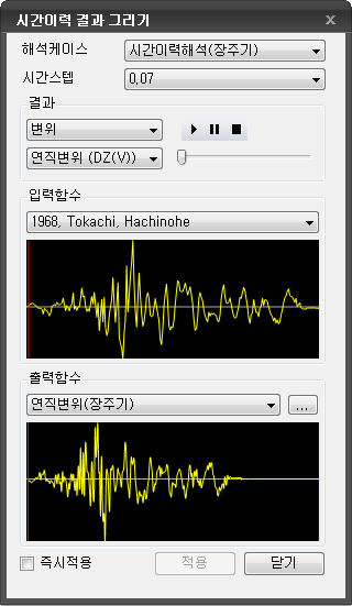 이력그리기 Home > SoilWorks > 동해석(Dynamic) > 결과 > 시간이력결과 > 이력그리기
