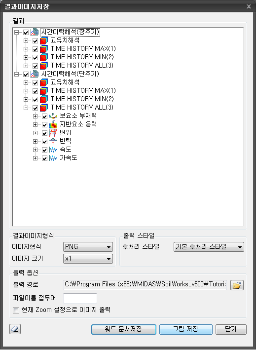 결과이미지 저장 Home > SoilWorks > 동해석(Dynamic) > 결과 > 결과이미지 저장