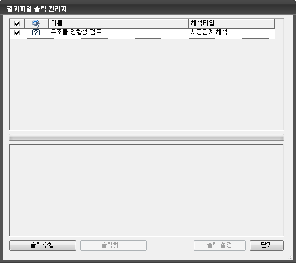 클릭하는 경우 선택한 해당 해석케이스의 결과파일 출력이 취소됩니다. -