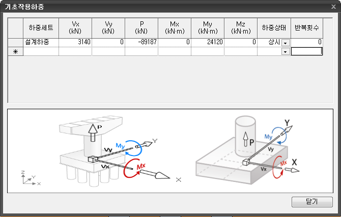 기초작용하중(기초) Home > SoilWorks > 기초(Foundation) > 기초 > 하중 및 경계 > 기초작용하중(기초)