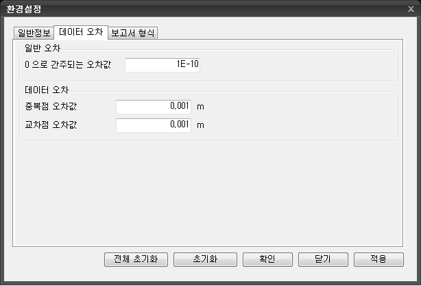 - 교차되어 있다고 간주하고 하나로 합칠 오차를 입력합니다.