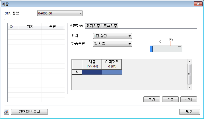 일반하중 Home > SoilWorks > 모델링 > 단면 모델링 > 일반하중