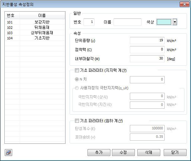 지반물성의 속성을 정의합니다.