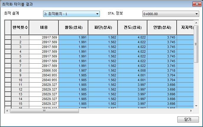 표 결과 Home > SoilWorks > 설계 > 최적화해석 > 표 결과
