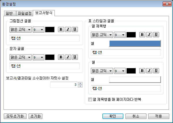 - 자주 사용되는 옵션을 미리 설정하여 새파일 생성시마다 일괄 적용할 수 있습니다.