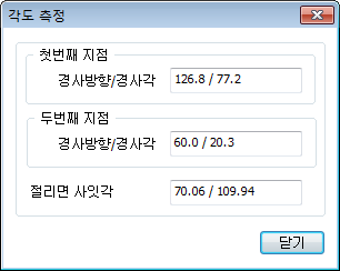 각도측정 Home > SoilWorks > SoilWorks-Rock > 평사투영 > 도구 > 각도측정