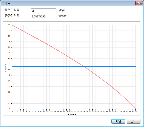 | 목표안전율 | - 파괴조건에 해당하는 목표 안전율을 입력합니다. - 입력된 안전율이 계산될 수 있는 모든 조합의 점착력과 마찰각이 자동 출력됩니다. |