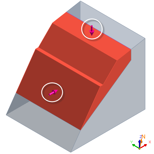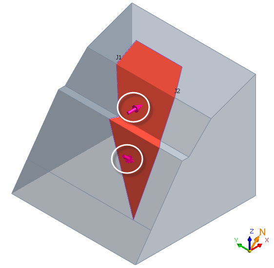 - 외부하중 적용 시 선택된 면의 도심위치에 방향에 따라 화살표로 표시되며, 실제 작용위치는 다른 모든 하중, 보강력과 마찬가지로 쐐기의 도심에 작용하는 것으로 해석에 반영됩니다.