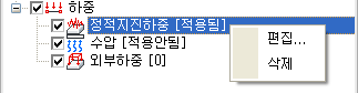 - 작업트리에서 마우스 우측버튼 메뉴를 통해 수정 또는 삭제(적용안함) 할 수 있습니다.