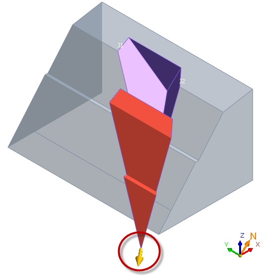 - 정적지진하중 적용 시 입력한 방향에 따라 절리 시작점에 화살표로 표시되며, 실제 작용위치는 다른 모든 하중, 보강력과 마찬가지로 쐐기의 도심에 작용하는 것으로 해석에 반영됩니다.