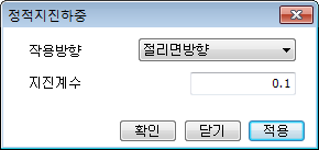 - 파괴유형별 정적지진하중 작용방향과 크기(지진계수)를 입력합니다.
