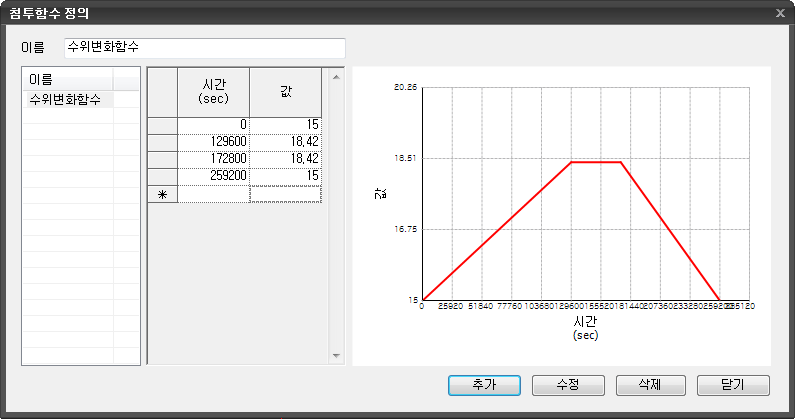 - 침투경계조건 함수는 시간에 따른 값(Value)으로 입력됩니다.