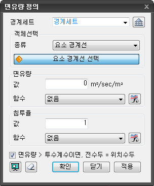 - 침투경계조건 함수를 활용하는 경우 체크하여 입력된 함수를 선택하거나