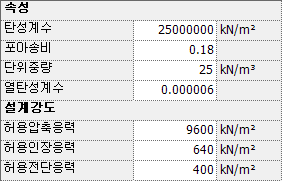 선택한 구조재료(콘크리트, 강재, 사용자정의 등)의 재질정보를 수정합니다.