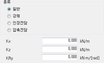 일반 : 일반 탄성연결요소로 3개 방향의 스프링 계수를 직접 입력합니다.
