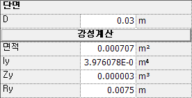 선택한 부재종류와 단면 형상에 따라서 치수를 입력합니다. 그림을 참고하여 치수를 입력하면 강성계산은 자동으로 실행되며 직접 입력해야하는 강성도 존재합니다.