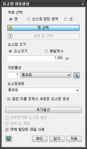 | 호출 | 메인메뉴 : 모델 > 요소망 > 자동요소망 |