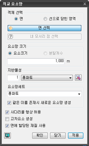 호출 메인메뉴 : 모델 > 요소망 > 직교요소망